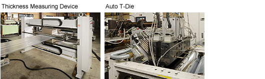 And the molten polymer pushed out from T-Die forms a film / sheet by the chilled roll process, then the thickness is measured by a gauge measurement device.